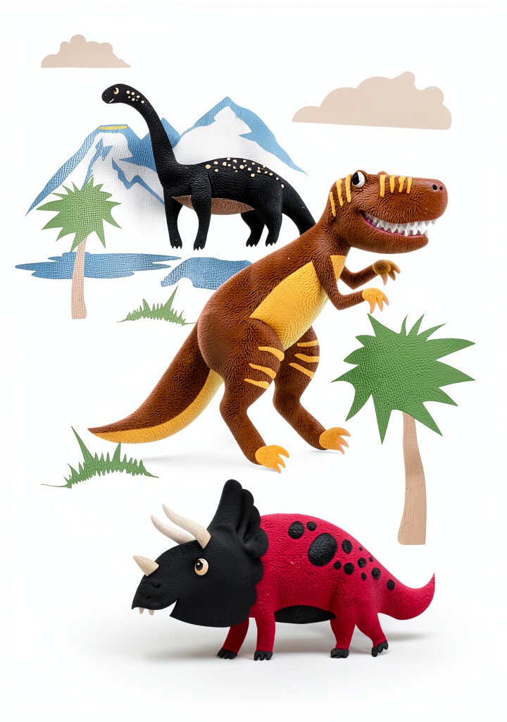 Each 3-pack includes three different designs: one shirt with a dinosaur graphic, one with an all-over dinosaur print pattern, and one striped design for variety.